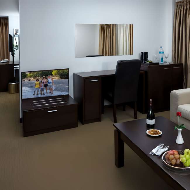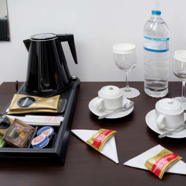 כל חדר מצויד באמצעים להכנת תה וקפה, ודלפק הקבלה הפעיל 24 שעות ביממה עומד לרשותכם בכל עת.